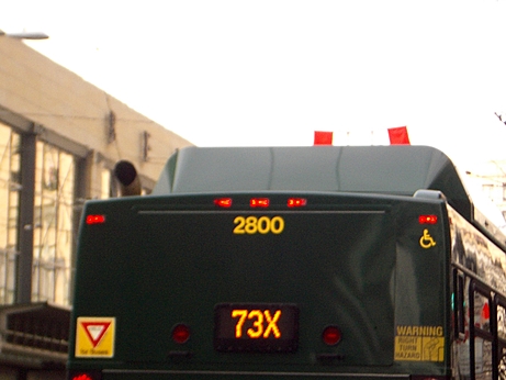 In fact, when I was stopped, I didn't know why. To point out the sign that I had ignored, the officer told me look behind and there was a bus blocking whatever it is he wanted me to see. He then told me to wait for the bus to pass by so I could see the signs!