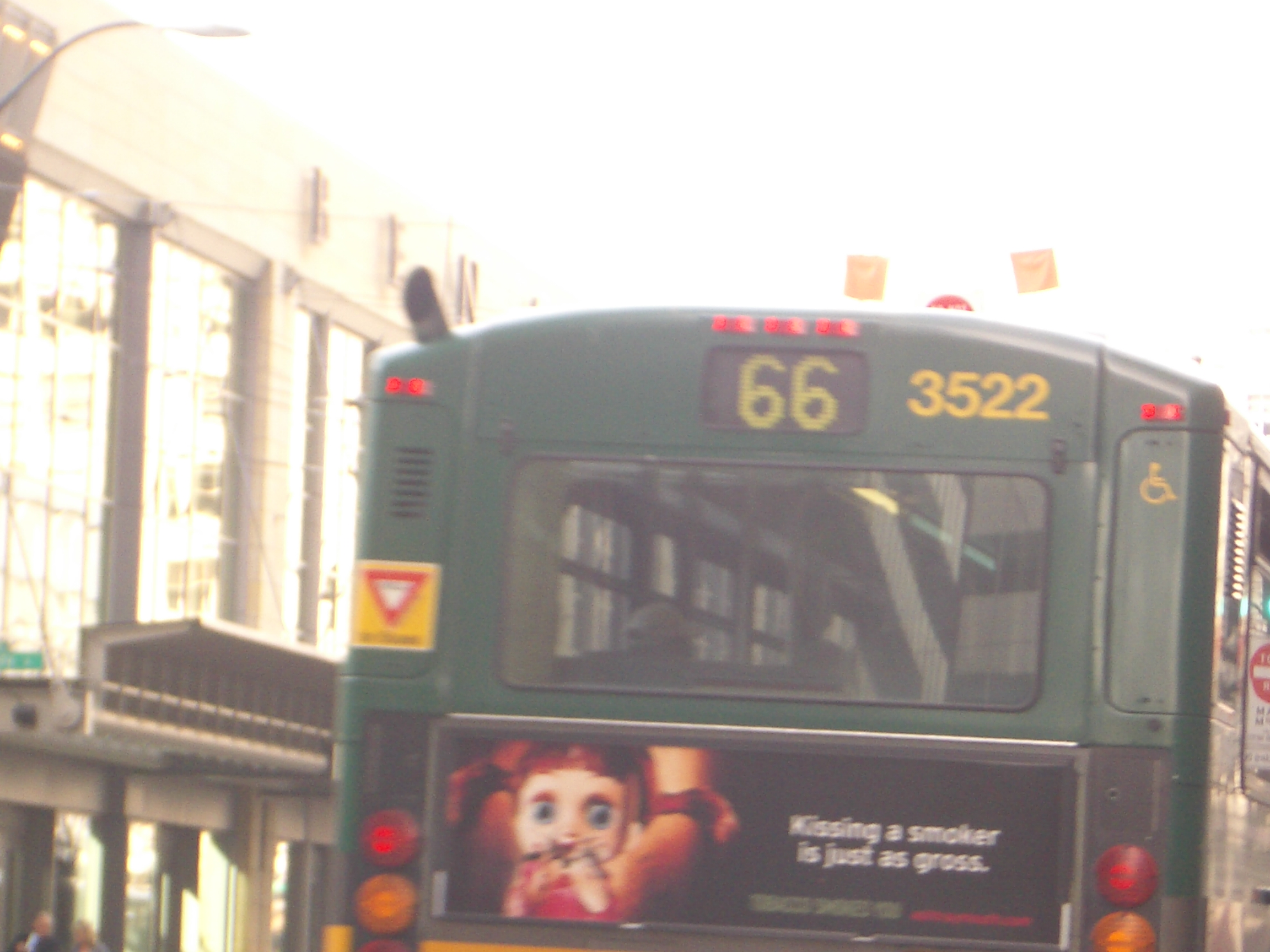 Apparently, they have changed the rules on 3rd Avenue in the last six weeks (before I was stopped) so that right turns are only allowed from 6-9a and 3-7p. I didn't see these signs since during the entire time I was on 3rd Avenue before I was stopped (about two blocks), I was driving to the left of and behind large buses, which blocked my view of the signs at the corner of the intersection as well as the top signs. (Note that the change regarding the lanes was due to the downtown bus terminal being redone, which has resulted in a LOT of bus traffic on 3rd Avenue especially during rush hour.