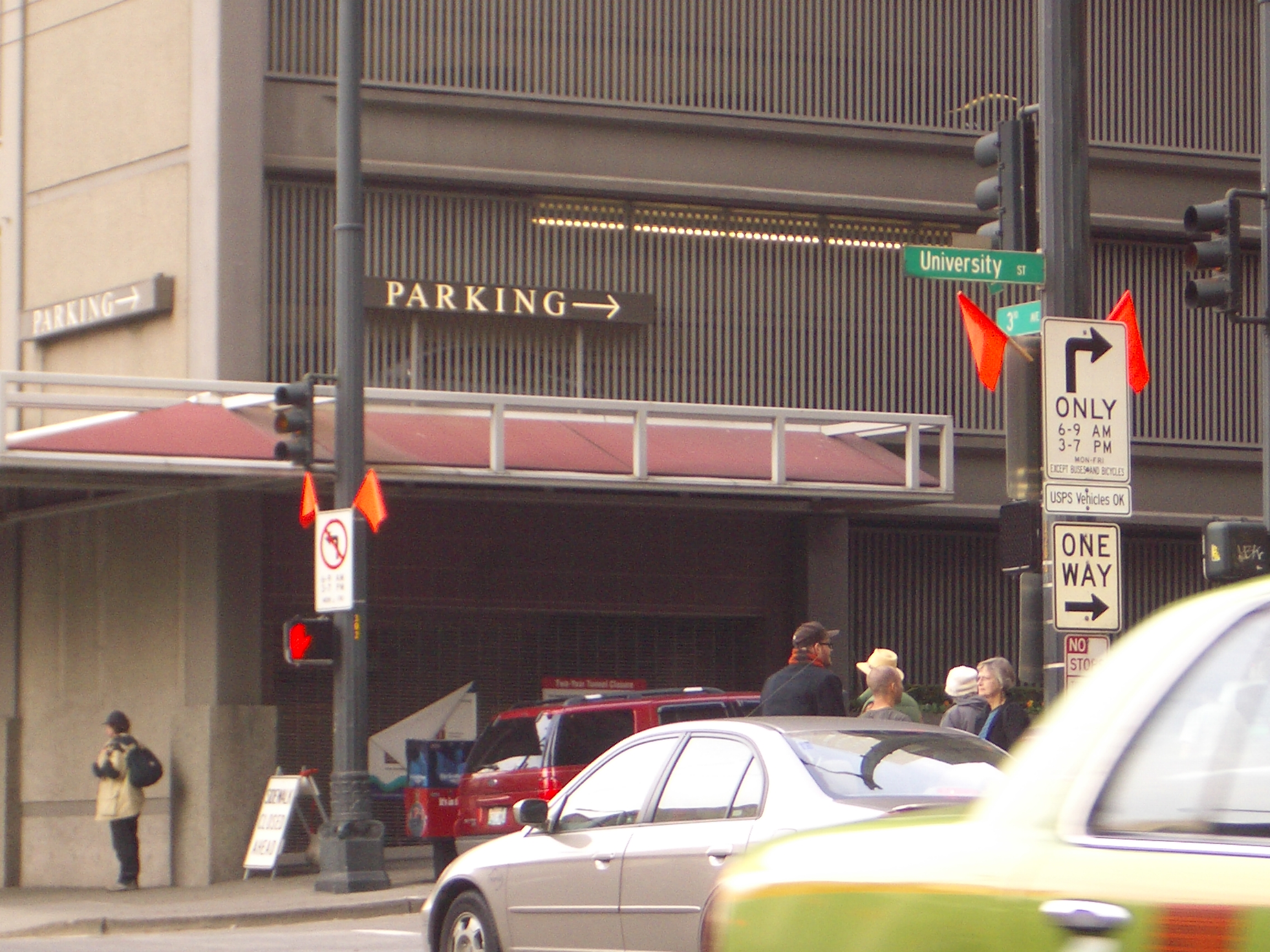 I was stopped for failing to obey a traffic control device. This occurred at the intersection of University and 3rd Avenue in downtown Seattle at 510pm on October 26, 2005.