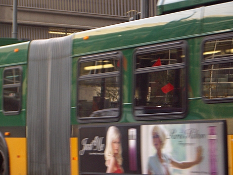 The solution then is that these signs should be also added to the buses themselves, and also to the left hand of the driver (i.e., the other side of the street). Currently, there are signs giving warnings to drivers driving in the opposite direction, but these are empty white boards on the other side.