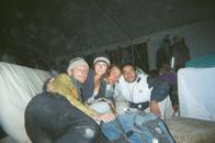 Our trip started on Thursday, August 31st, after I had finished making a whole bunch of predictions for the fourth meeting on the Critical Assessment of Protein Structure Prediction while averaging two hours of sleep per day for the last two weeks. I, along with my friends Jason (who took a few of the pictures here), Bagus and Crash, headed out to Black Rock City in Nevada in a conversion van loaded with enough food and water, shelter and musical equipment, and a generator to enable us to survive for four days in the desert. The journey was uneventful and we arrived at our camp site around midnight, which we christened as the Where the Hell is Frank Free Music camp (a combination of our musical philosophies and the search for a missing friend). We created a tent-like structure using a parachute dome as canopy and set up all our gear.