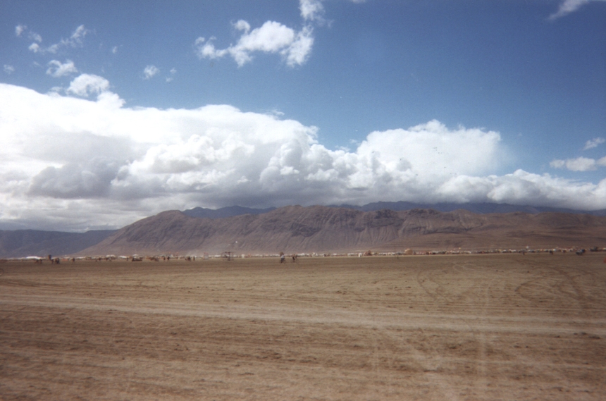 On Sunday, September 3, 2000, I watched the sun rise while I was sitting outside our tent in the place that is temporarily Black Rock City, Nevada every year. Hours before, the Man had been burnt, and I had spent the rest of the night exploring the amazing art in the "city". The sun cast its orange rays on the clouds causing them to shimmer and burst with life. In my purely sleep-deprived state, the shimmering clouds seemed to turn into mermaids that turned into fish that turned into swans that turned into dragons that turned into butterflies that I could almost reach out and touch. Behind me, the Black Rock mountains seemed to form a huge tent and slowly billow over the high desert (or "playa") covering all the tents that comprised Black Rock City. That is just a taste of one of the most surreal and psychedelic experiences I've been through in my life.