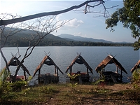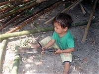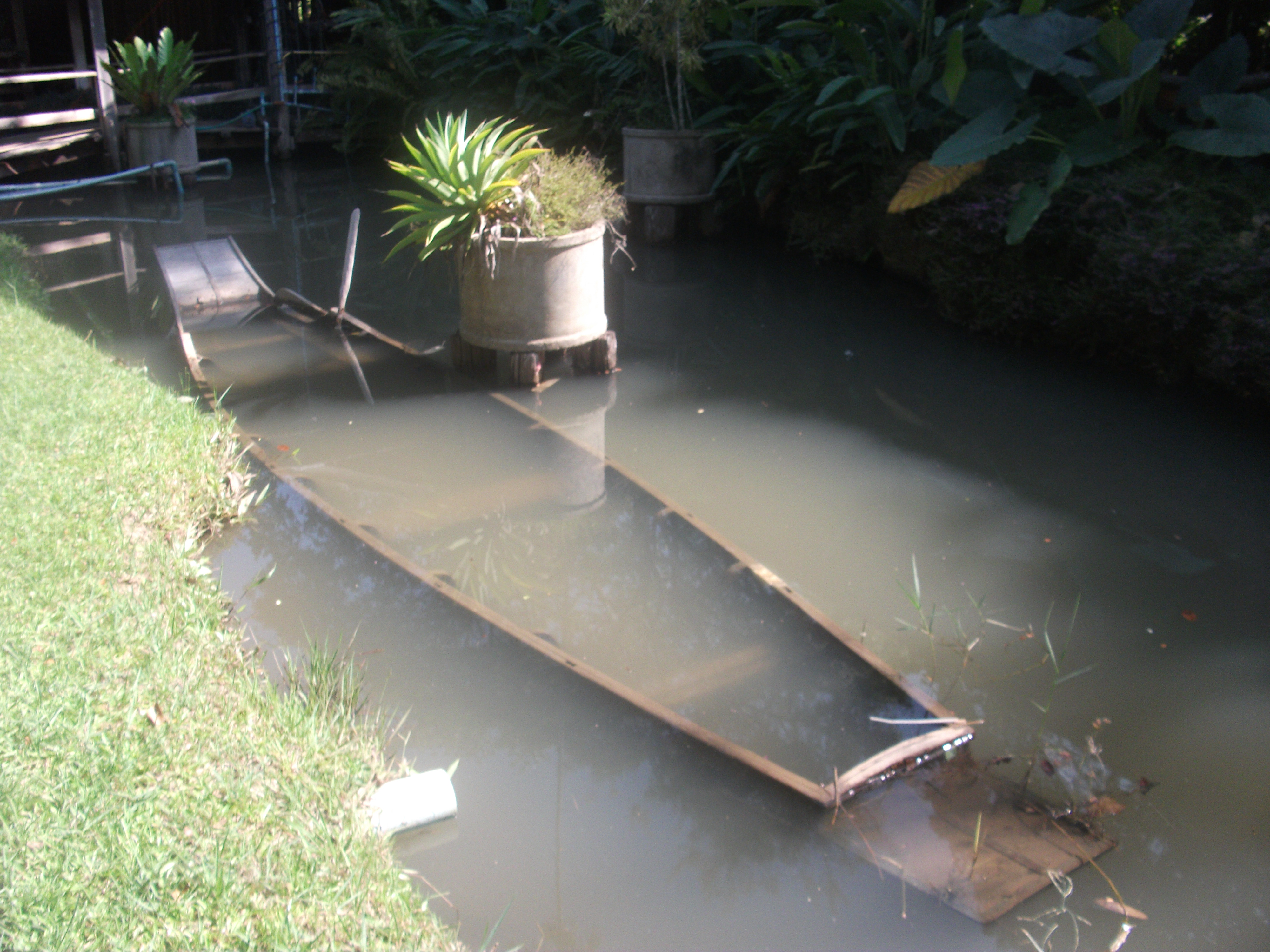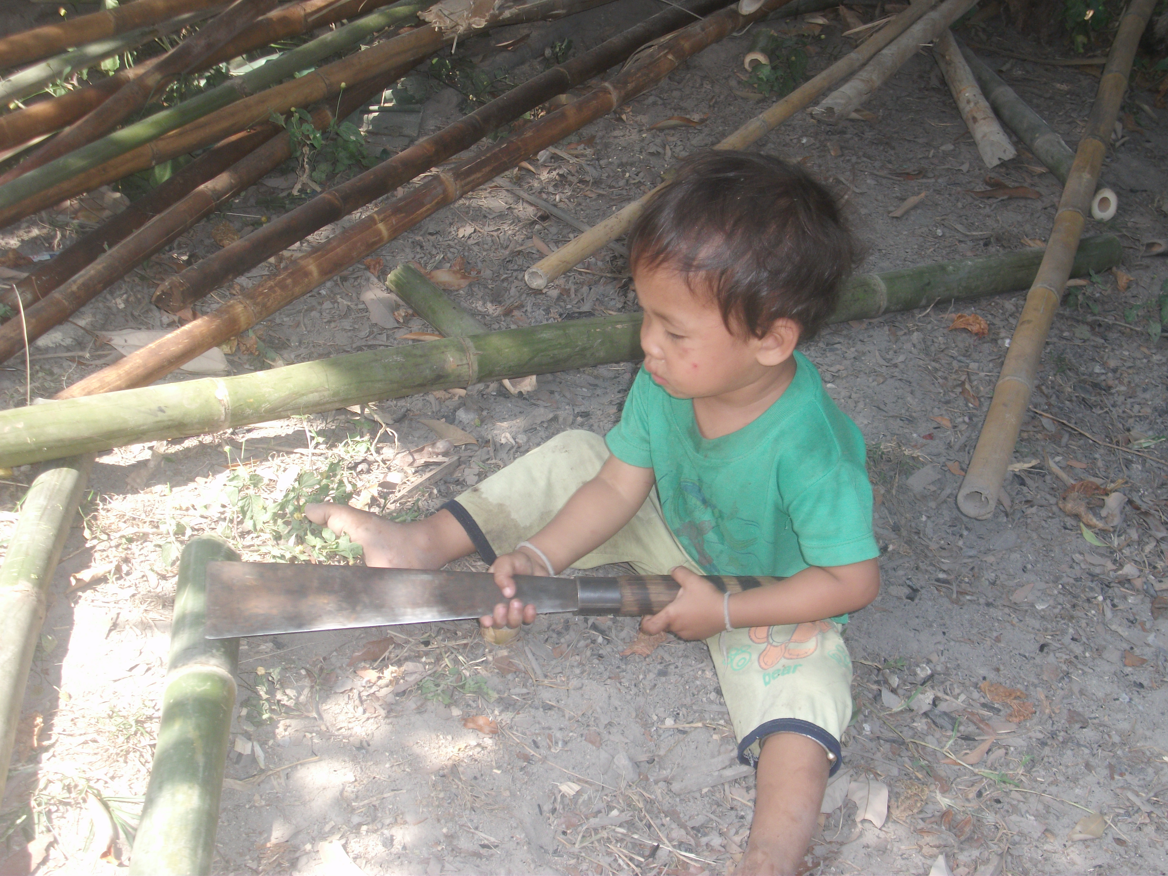 There we left our ~2 year old daughter Maya with her grandma and headed out to Chiang Mai on Nov 23. Chiang Mai was a place we wanted to go because people spoke highly about it, but we found it "okay". We visited the Hmong "village" (which was an expensive tourist trap) and met members of the long necked tribe (caused by wearing neck bracelets --- their necks are stable without the bracelets if you're wondering), an orchid farm, and a lake, all on Nov 24. As usual, we saw unique Asian sights, like kids playing with machetes and a sunken boat in a small pond.
