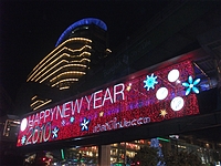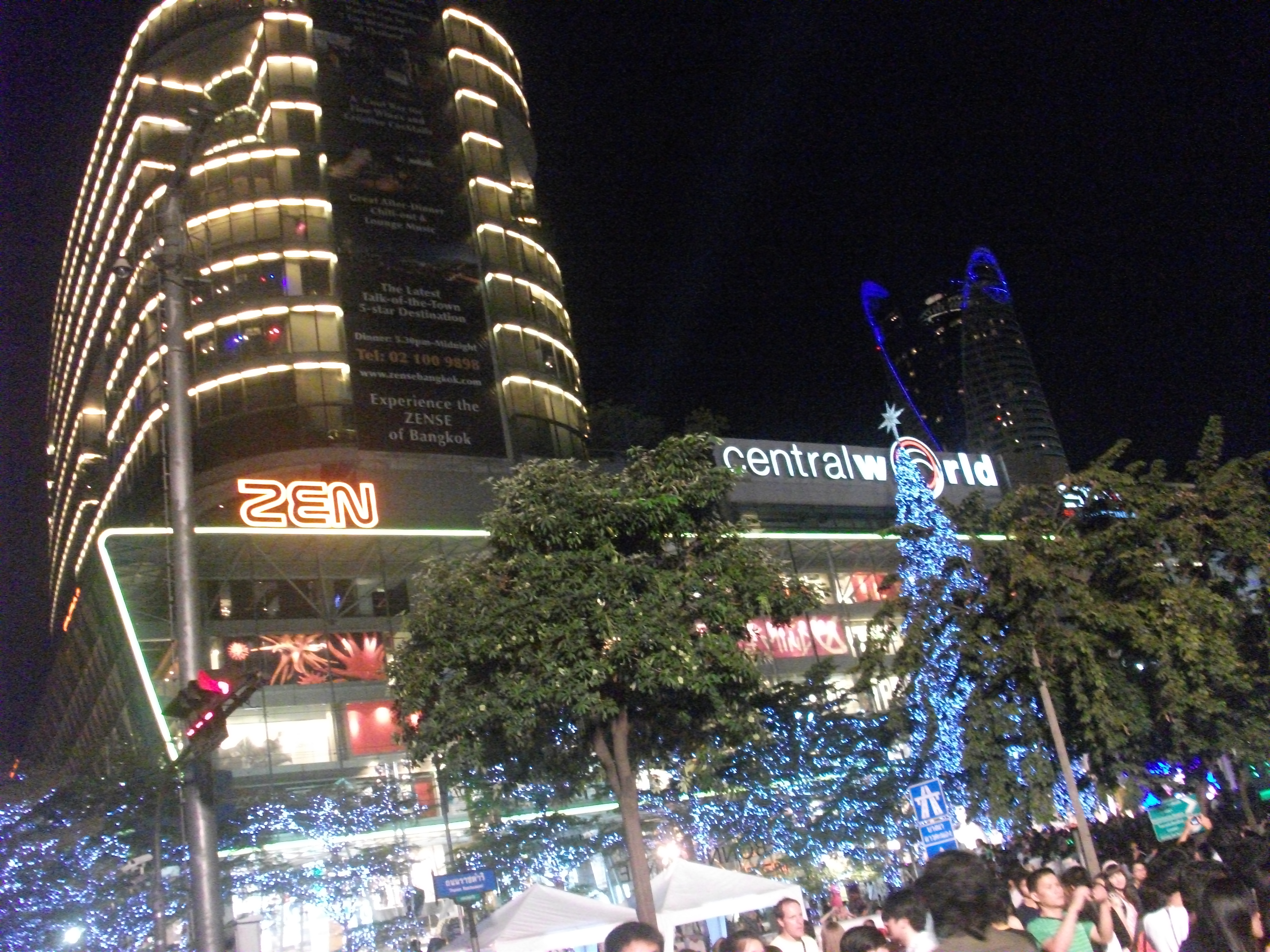 We went to CentralWorld for New Year's Eve, allegedly the most happening place in Bangkok on that day. It was pretty crowded and we sat outside on the road listening to concerts and waiting for the countdown. The fireworks were okay, but the atmosphere was a lot of fun. Right after we left Thailand, massive demonstrations by "red shirts", populist followers of ousted Prime Minister Thaksin Shinawatra, led to this area being brought to a stand still for more than a month, eventually culminating in riots and fires where a large portions of CentralWorld were burnt down. You can see the Zen mall on the far left of the "panoramic" shot of CentralWorld above, and below are before and after pictures comparing Zen, side by side.