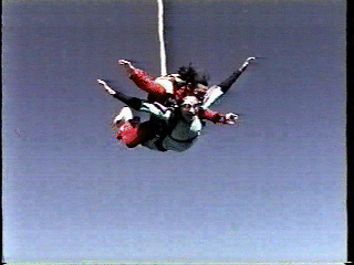 Falling. From 18,000 feet. The highest in the world. The first thing we did was a tumble as I saw the sun and the mountains whirl before my eyes. And I felt us falling fast for a few seconds and then we had reached terminal velocity and it was as though we were floating. Travelling at 120 MPH and free falling for about 75 seconds (from 18,000 to 6,000 feet), one of my first thoughts was "I must be crazy to be doing something like this!" When I jumped, it was without a thought as to whether I'd survive or not.