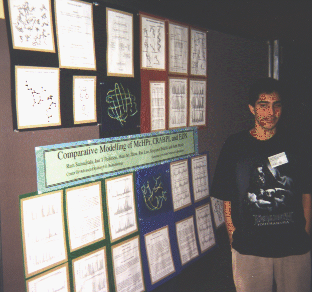 We submitted three models in the homology modelling category, and Mike James, the assessor for the comparative modelling category decided not to display the names of the people who submitted the structures. Thus it was hard to judge who did best, but from looking at the numbers, and our own assessments, we either did the best or the second best (I know we did best for at least one of the three models we submitted). The day itself was somewhat disappointing, in that very little progress has been made in the field of comparative modelling. We still couldn't predict loops/insertions accurately, and worse, a lot of groups got their sequence aligments wrong, which is definitely a no-no.